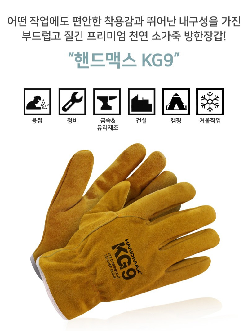 핸드맥스(Handmax) - 안전장갑의 기준! - [핸드맥스] KG9 NO.216 (소가죽 털안감 방한장갑)