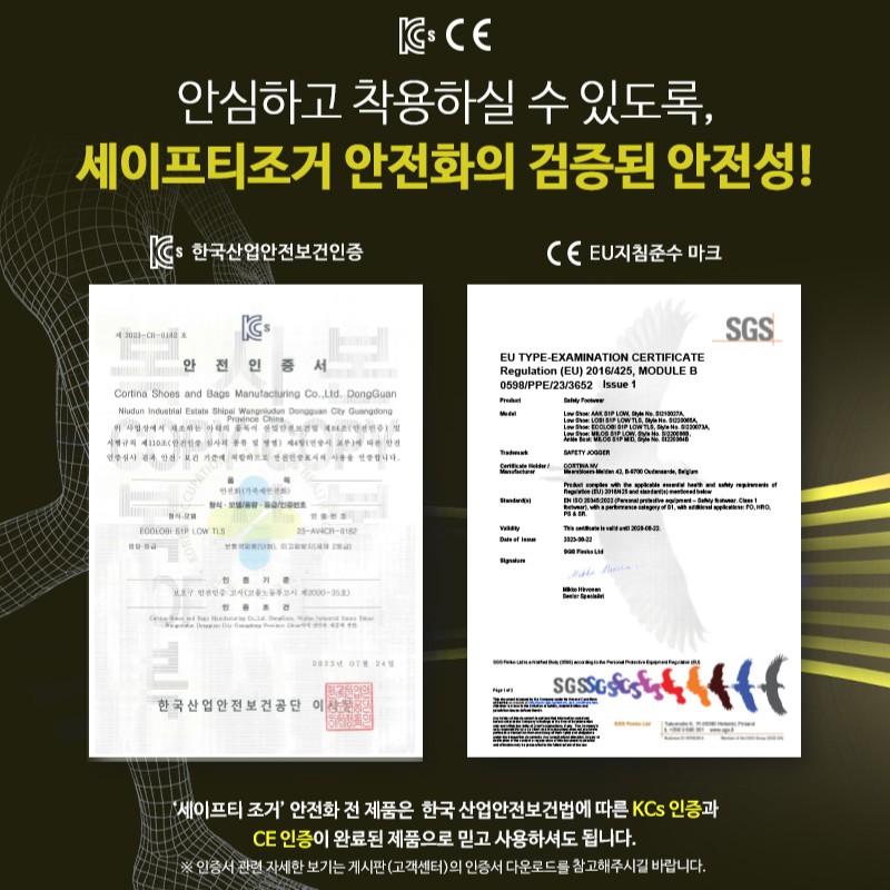 KCs 인증은 물론 엄격한 유럽 안전화 규격까지