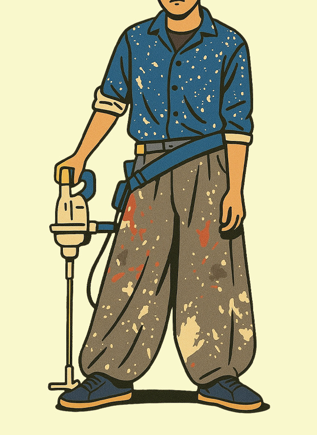 일본의 ‘토비복(鳶服)’은 건설현장, 전기·배관 등의 기술직 노동자들이 입는 독특한 워크웨어다. 통 넓은 바지와 짧은 상의는 높은 곳에서 몸을 유연하게 움직일 수 있도록 설계되었으며, 허리 아래로 좁아지는 ‘니카포카(Nikka-pokka)’ 스타일은 안전성과 활동성을 동시에 확보한다. 1970~80년대에는 기능적 의복을 넘어 전문 자부심을 상징하는 패션으로 발전했다. 최근에는 일본 내 워크웨어 브랜드들이 이를 현대적으로 재해석해 거리 패션과 작업복의 경계를 허물고 있다.