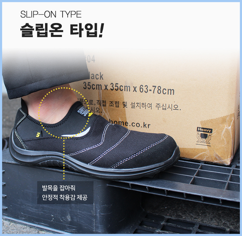 슬립온 타입이지만 작업 중 신발이 잘 벗겨지지