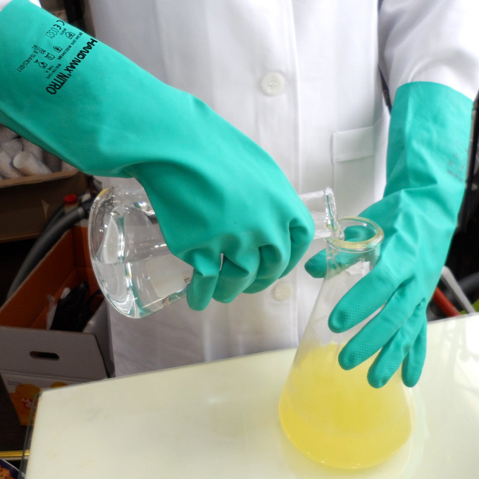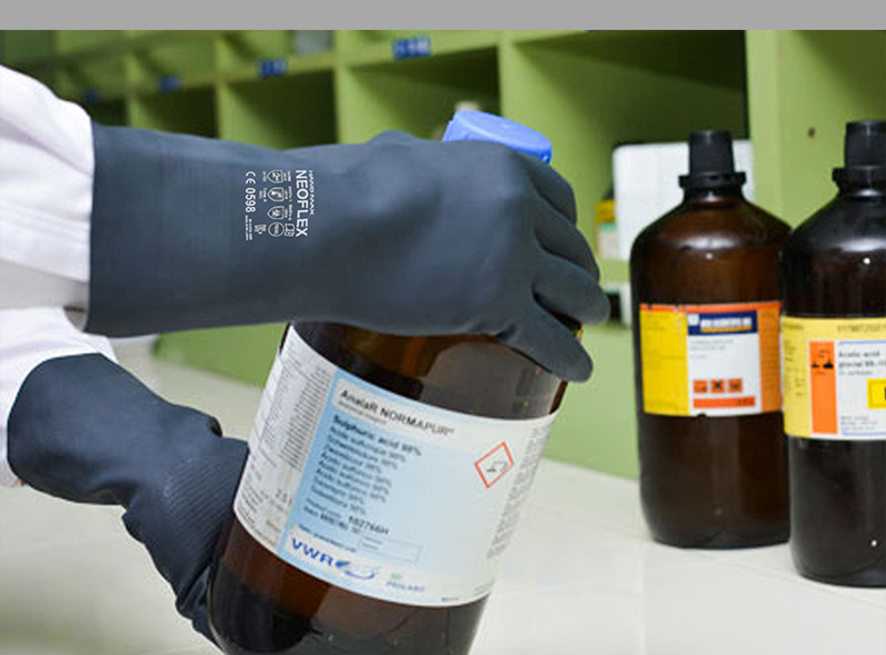 내화학 장갑은 니트릴, 네오프렌, PVC 등