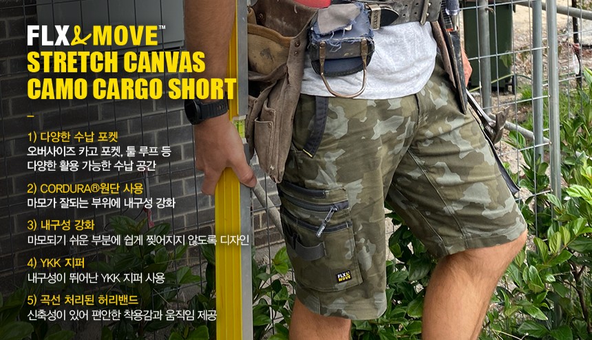 [비즐리] 플렉스 앤 무브 스트레치 캔버스 카모 카고 반바지 BSHC1337 - GOODWORK