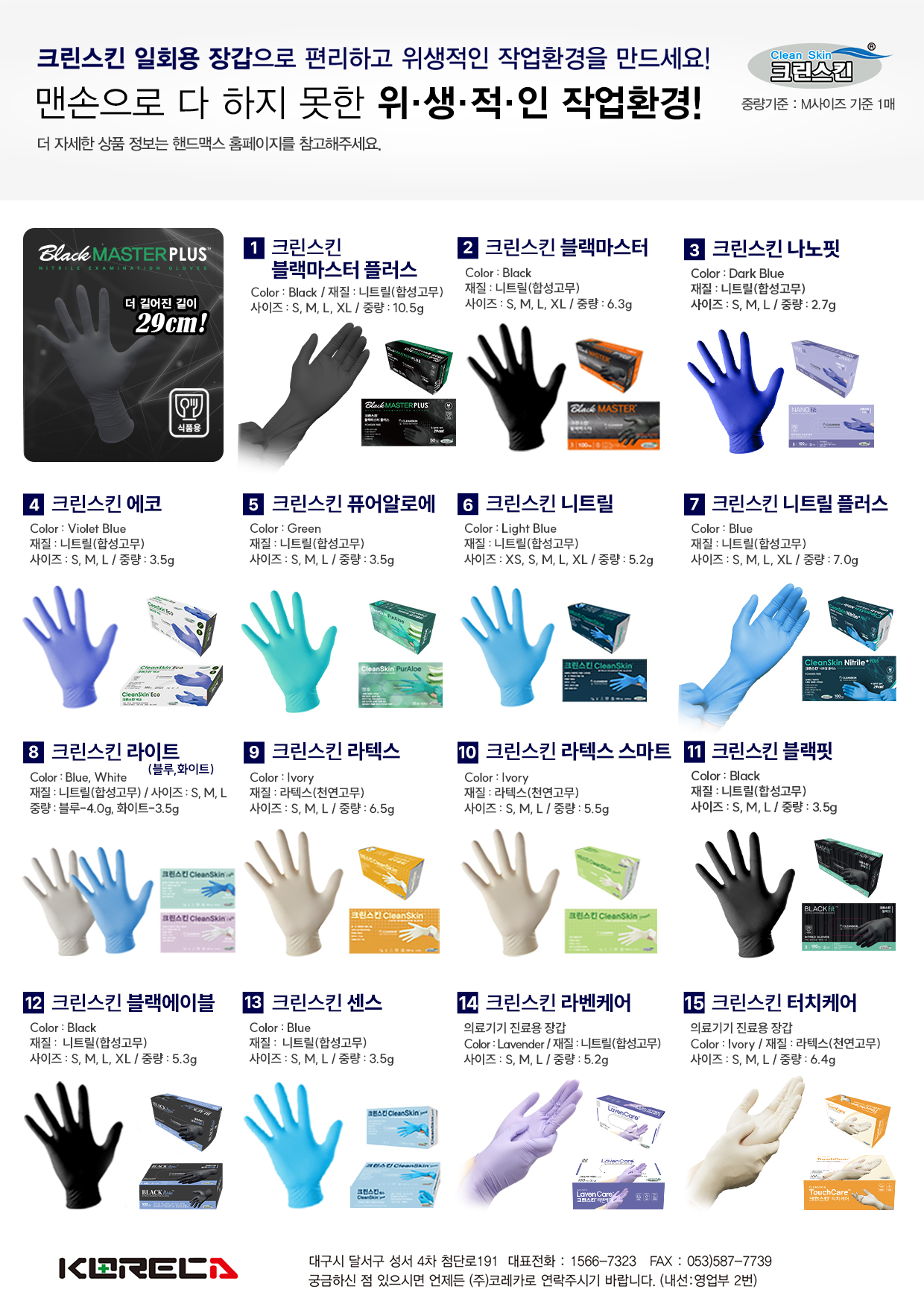 크린스킨의 일회용 장갑 14종 중에서