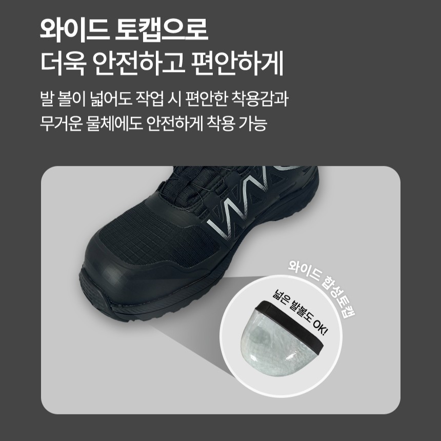 엑스트라 와이드 토캡이 적용되어 토박스 부분이