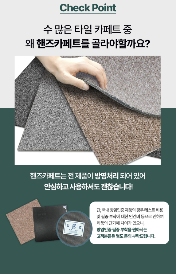 ✅핸즈카페트는 전제품이 방염처리가