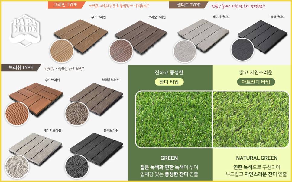 다양한 종류의 핸즈홈 파파메이드 데크 타일,