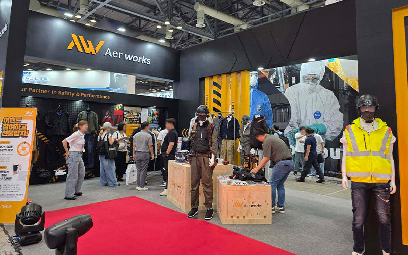 2025년 새롭게 출발한 아에르웍스(AERWORKS) 또한 눈에 띄었다. 일본 워크웨어 시장을 대표하는 브랜드를 국내 정식 수입하고 있으며, 현장에서는 패션적 감각을 더한 모델들이 안전화와 점프수트를 입고 무대를 걸어다니는 런웨이 이벤트를 선보였다. 워크웨어가 패션쇼와 산업 현장이라는 전혀 다른 두 세계를 연결할 수 있다는 것을 상징적으로 보여주었다.