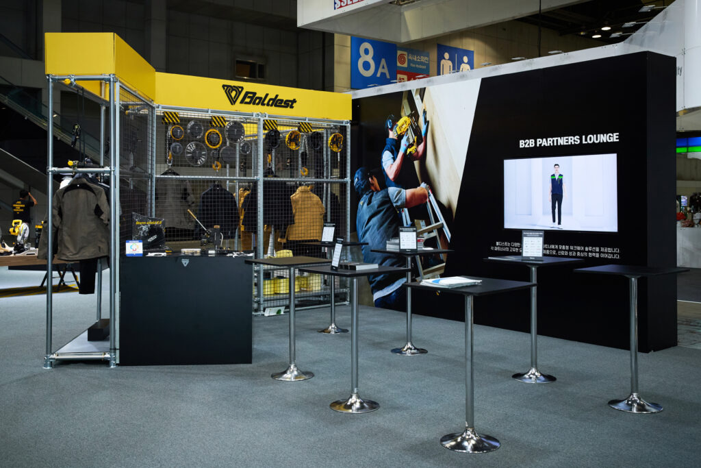 ‘B2B 파트너 존’은 현대건설, 현대자동차 등 주요 고객사와의 협업 사례를 중심으로 구성된다. 현대건설과 공동 개발한 MA-1 재킷은 방풍 및 보온 기능은 물론 기업 문화까지 바꾼 사례로 대중적으로 주목받고 있다. 이외에도 현대자동차의 니즈를 반영하여 함께 개발한 세이프티캡, 그리고 근골격계 부상방지 엑소스켈레톤(Exoskeleton) 장비와 함께 스마트 워크웨어도 선보인다. 이외에도 ‘워크슈즈 존’에서는 직군별 위험요소와 작업 환경을 고려한 볼디스트의 안전화 및 작업화를 전시하며, 미끄럼 방지, 통기성, 내구성 등 기능별 솔루션이 제시된다.